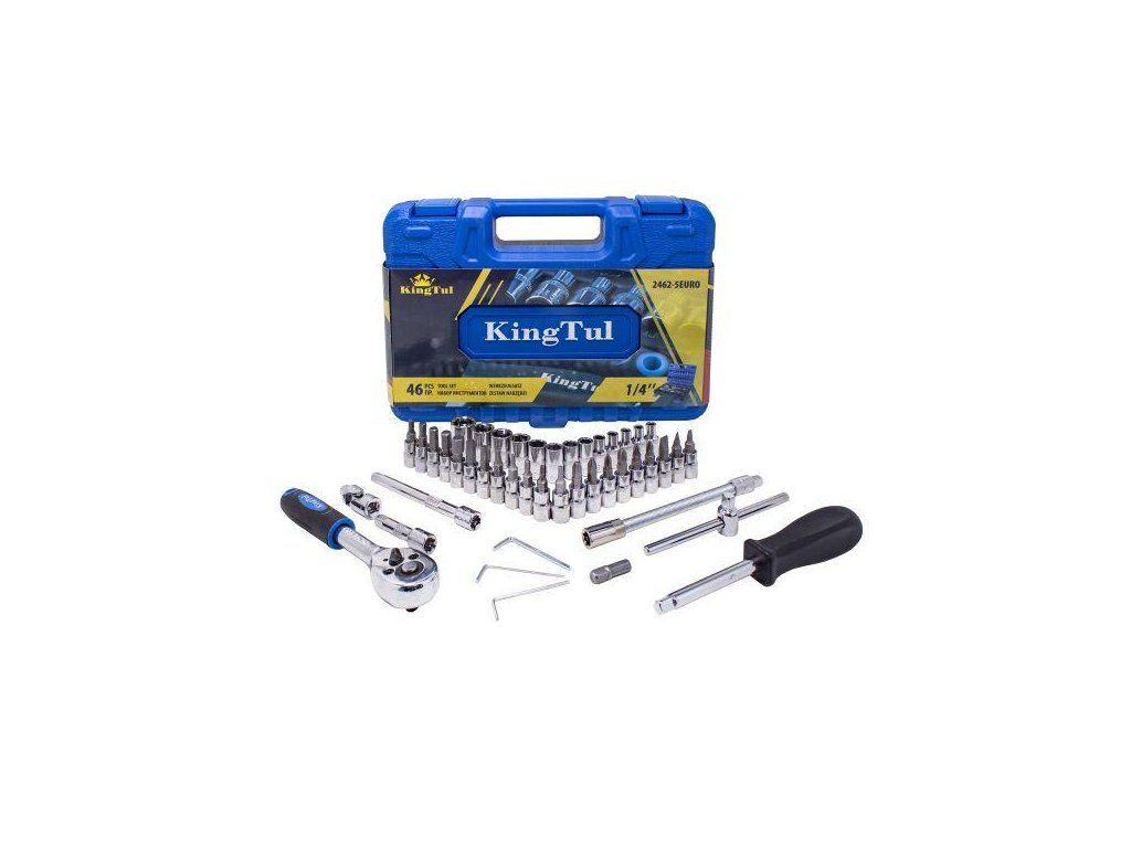 Setul de chei 1/4" este compus din 46 piese, fabricate din oțel crmo vanadiu de înaltă calitate.