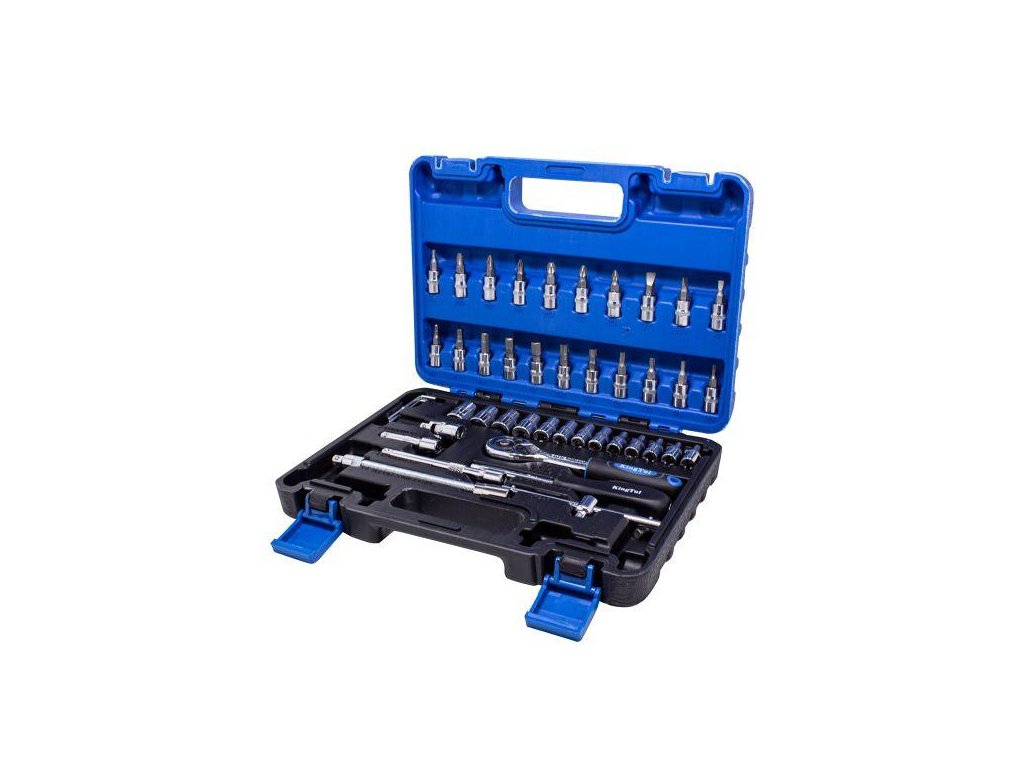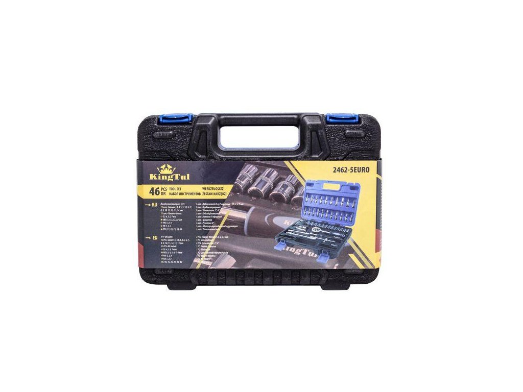 Setul include o tsyurčură, dotată cu un mecanism de blocare durabil. Setul conține un pachet bogat de adaptoare (în dimensiuni de la 4 la 14 mm) și adaptoare pentru bujii, biți de șurubelniță (plate, încrucișate, hexagonale, Torx). Accesoriile includ extensii (inclusiv flexibile), o articulație universală, chei hexagonale, o mână în T și un suport pentru biți. Piesele sunt organizate într-o valiză practică. Setul este excelent atât pentru utilizare profesională, cât și pentru uz amator. Fabricarea profesională și oțelul crmo vanadiu întărit asigură soliditatea și durabilitatea. Toate dimensiunile cheilor sunt marcate pentru confortul utilizatorului.Setul conține: