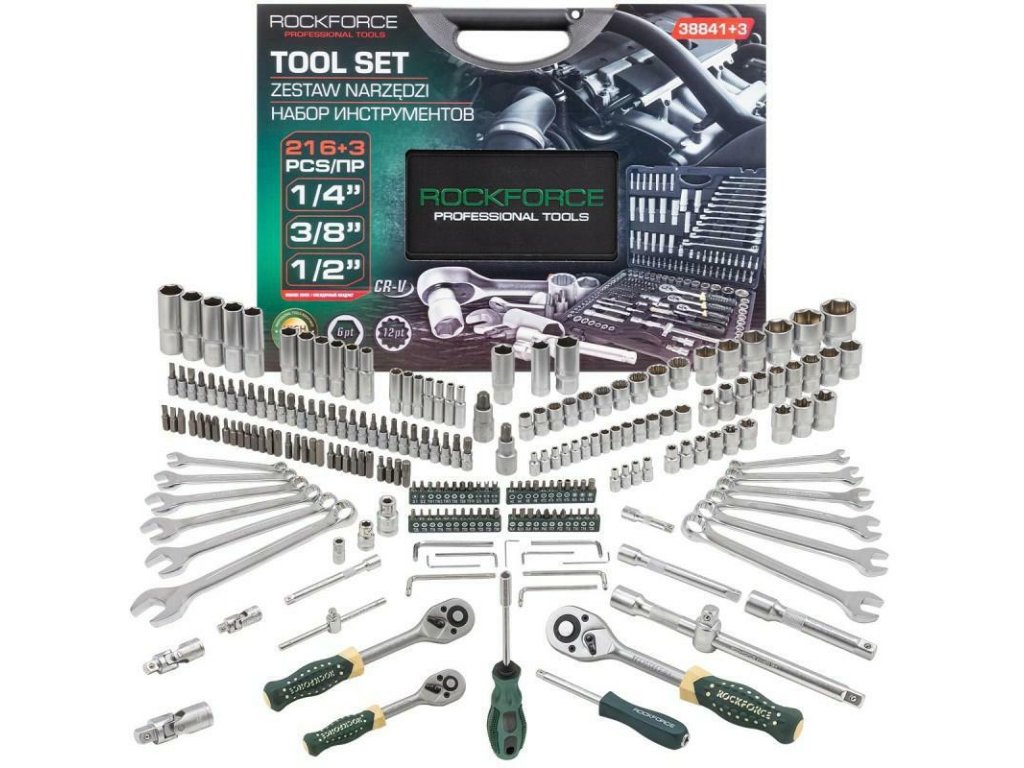 Set de unelte 216+3 piese 1/4", 3/8"