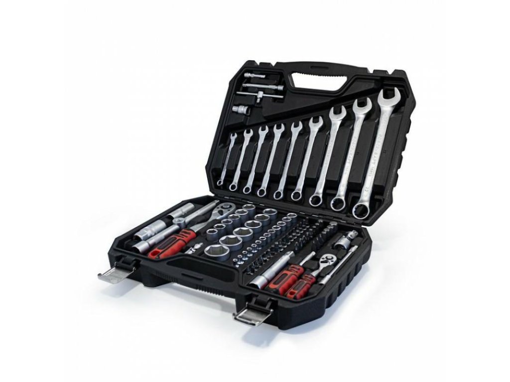 Întreaga set de unelte este depozitat într-un valiză foarte rezistentă și ergonomică din plastic care permite transportul și depozitarea ușoară a setului.