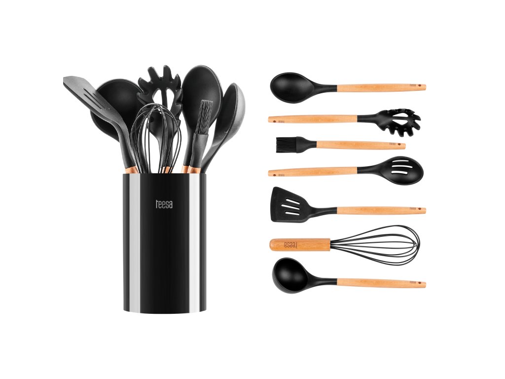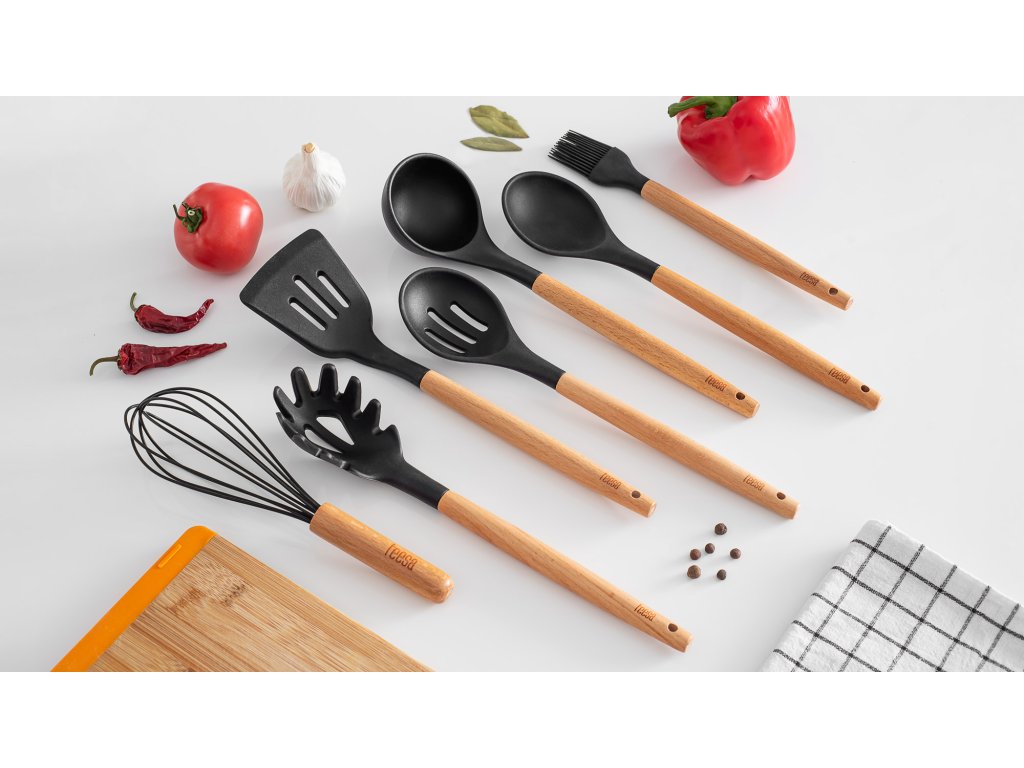 Setul de ustensile de bucătărie Teesa TSA0122 a fost creat cu gândul la ele, pentru a completa perfect interioarele bucătăriilor clasice și moderne. Conține toate accesoriile cel mai frecvent utilizate pentru prepararea mâncărurilor zilnice, cum ar fi polonic, lingură de servit și lingură pentru paste, spatulă și lingură perforată, pensulă și tel.