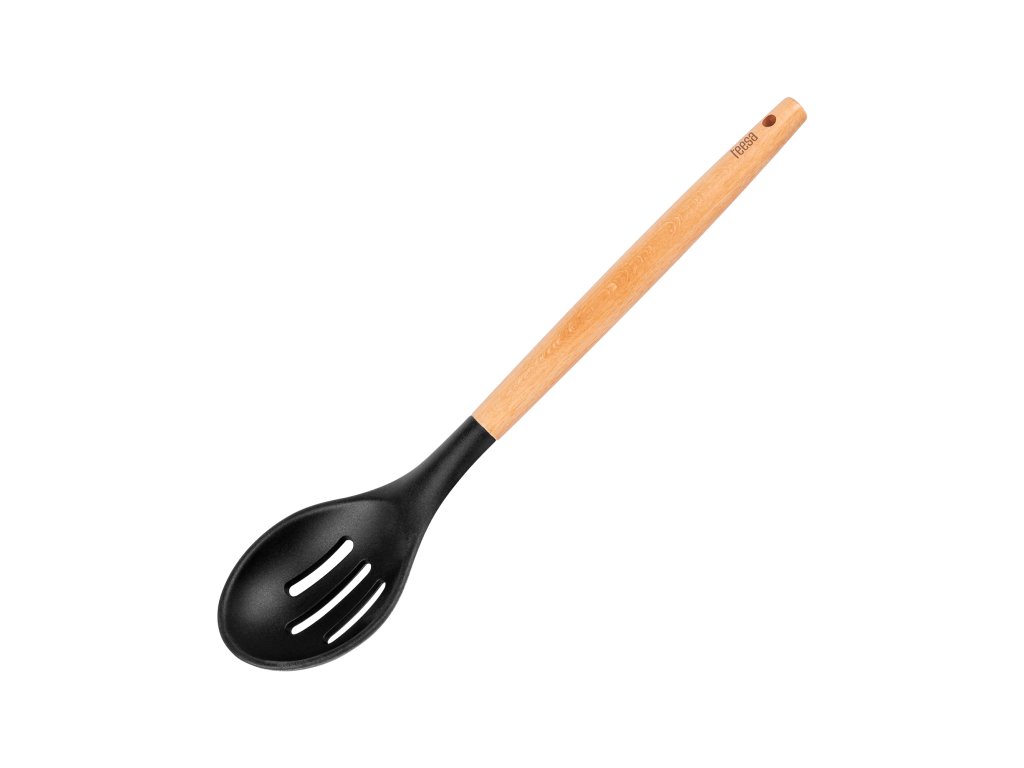 Ustensilele de bucătărie Teesa folosesc un silicon alimentar robust și rezistent la căldură, completat cu un mâner confortabil din lemn de fag. Acest design ingenios garantează că accesoriile Teesa nu se lipesc de suprafață și că nu veți zgâria oalele și tigăile în timpul utilizării.
