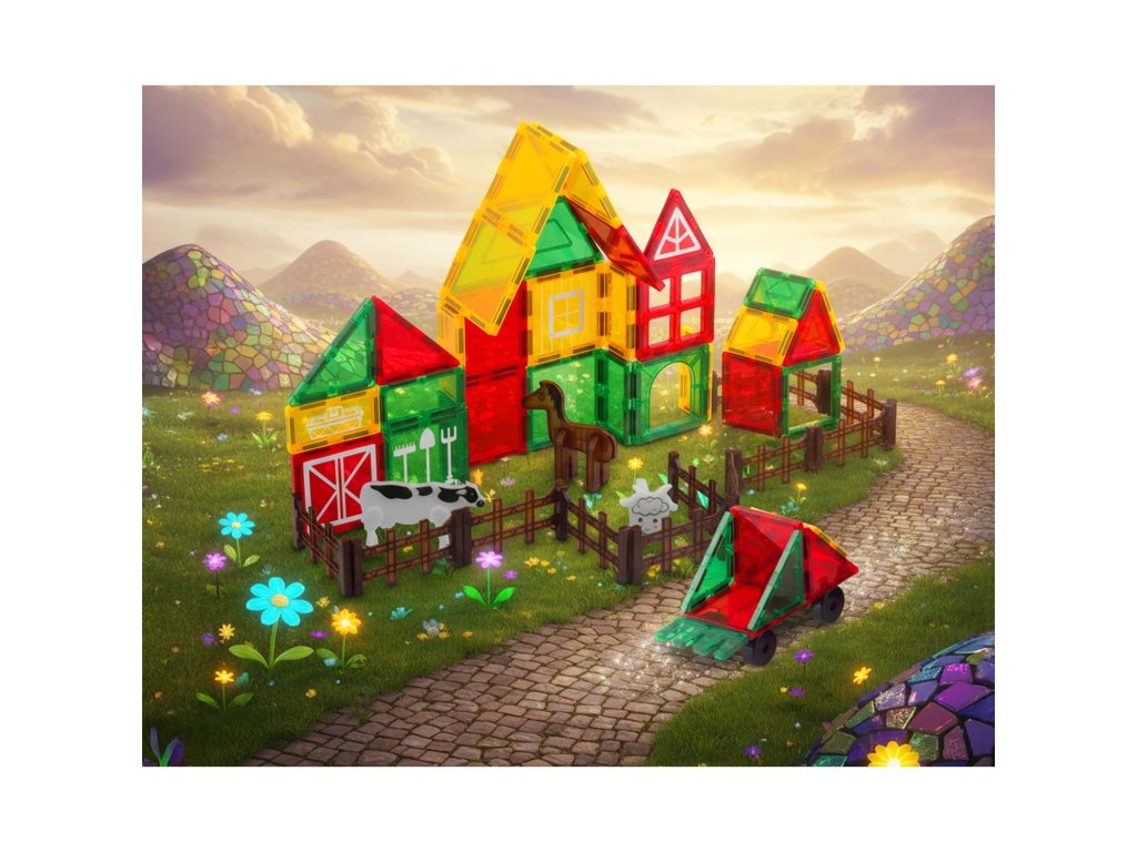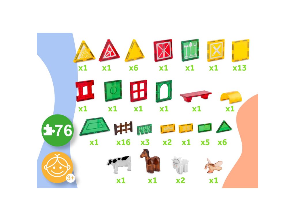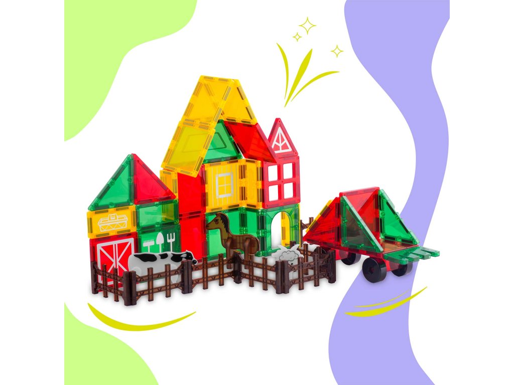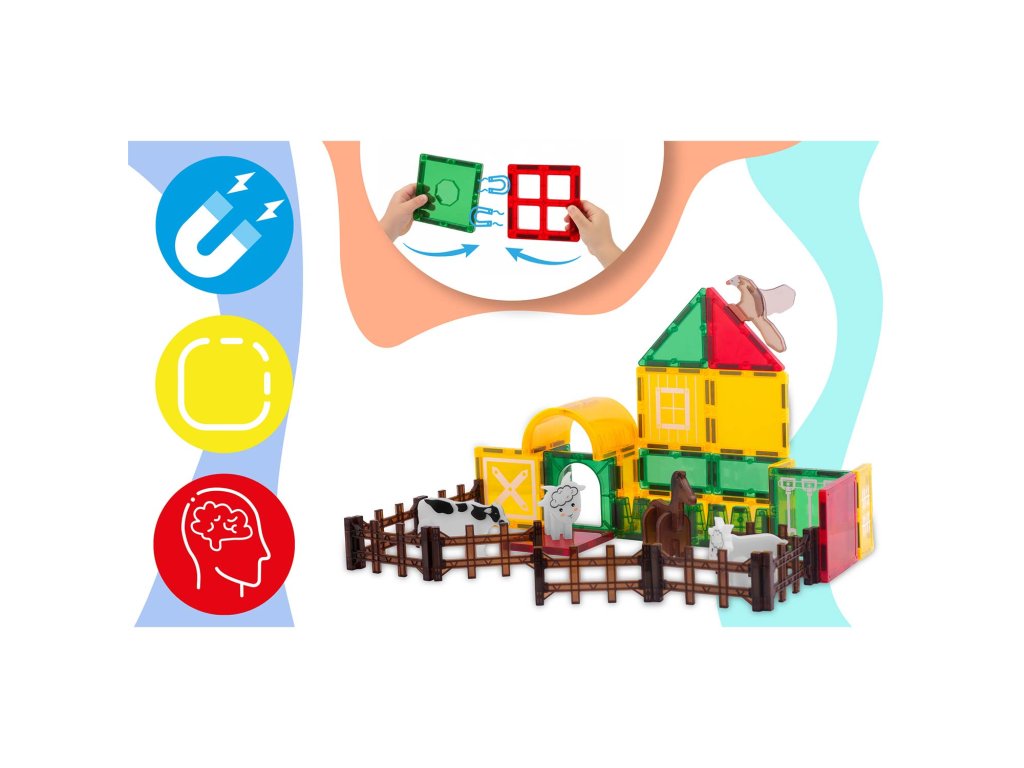 Set educativ de construcție magnetică ferma de animale RK-781 Ricokids