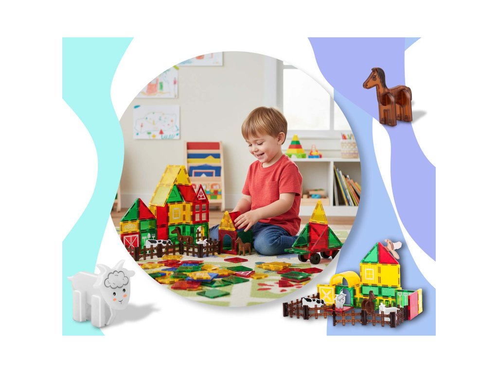 Cărămizi magnetice colorate cu motivul fermei de la brandul polonez Ricokids