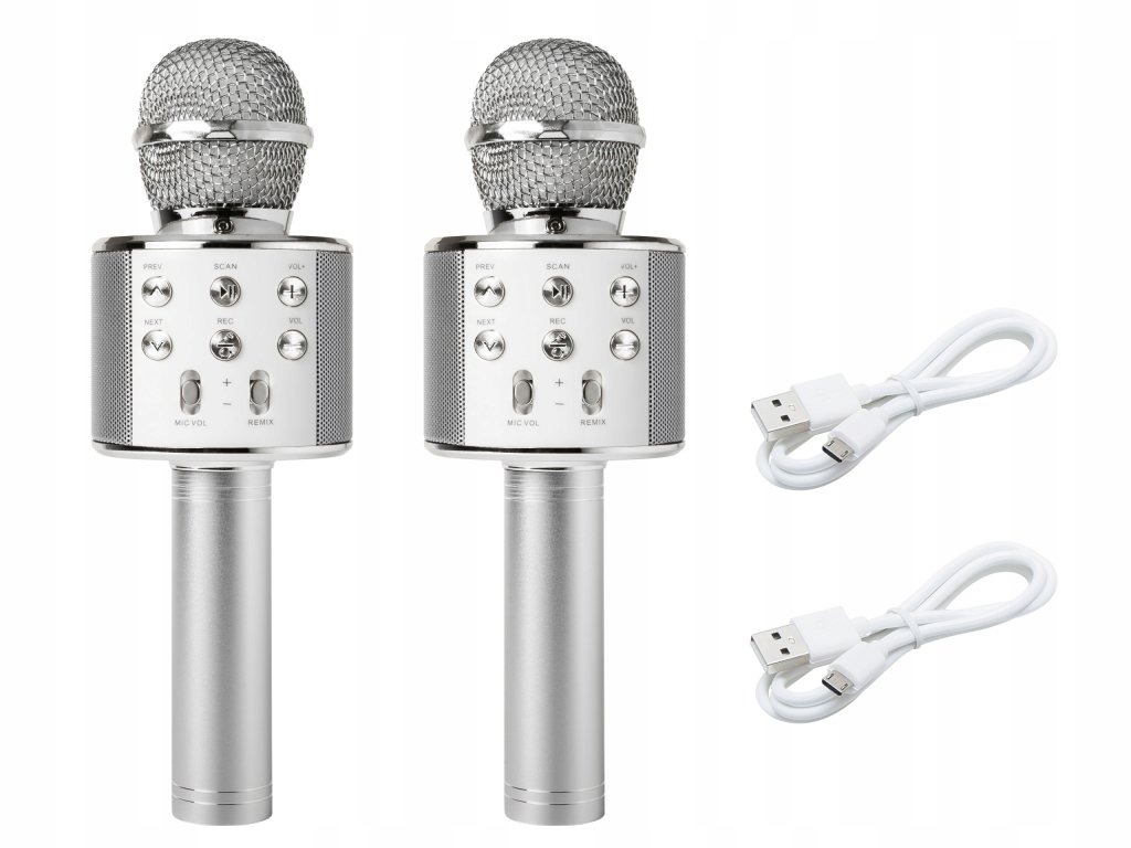 Set microfon karaoke wireless argintiu + argintiu PRM402