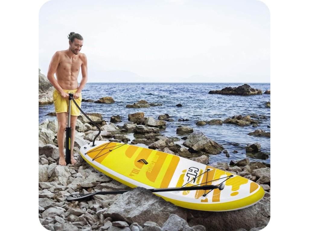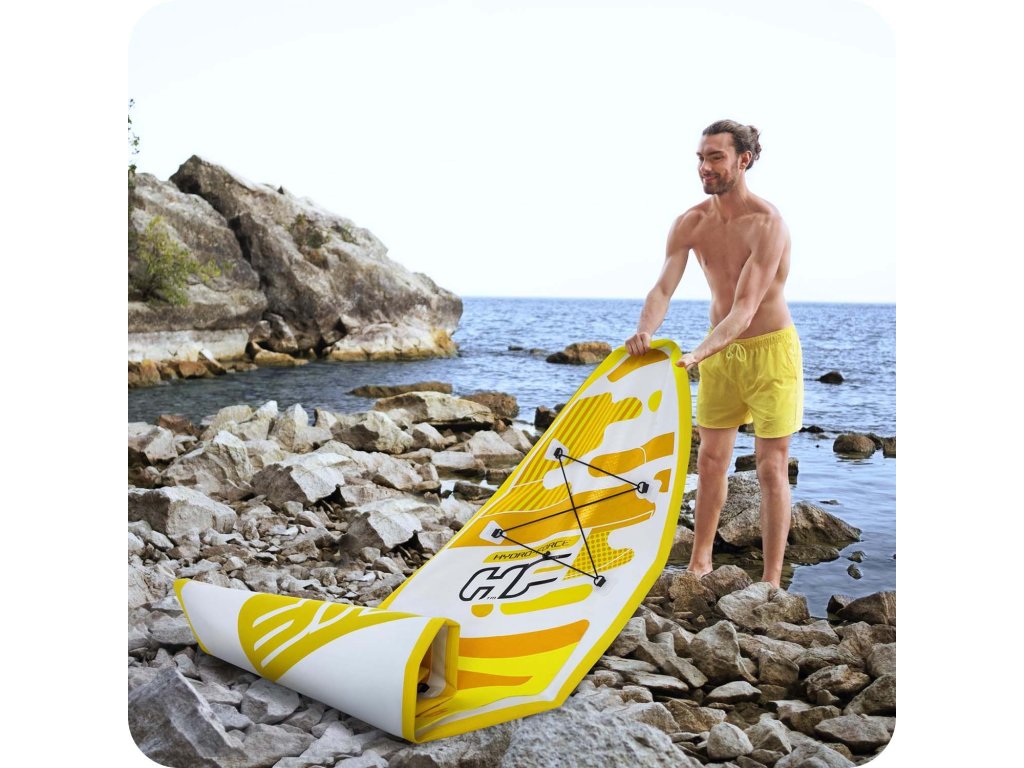 Placa de surf Bestway este fabricată din material drop stitch care oferă o durabilitate nebănuită, stabilitate și rezistență.