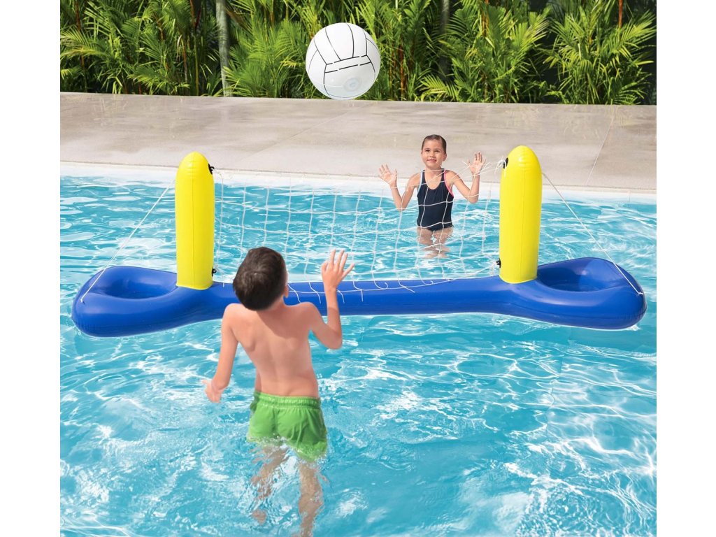 Acest set de volei a fost conceput special pentru jocul în piscină, datorită dimensiunilor sale fiind potrivit pentru majoritatea piscinelor.