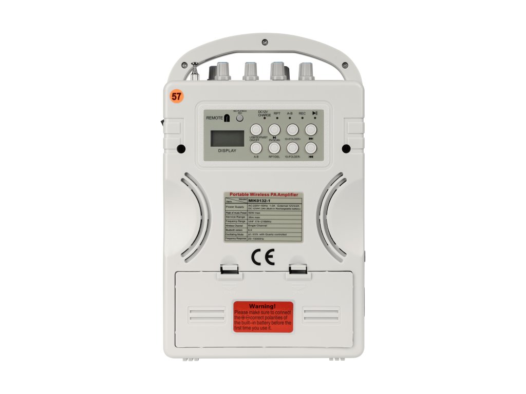 Dispozitivul are o intrare jack de 6,5 mm pentru conectarea unui microfon cu fir dinamic și o intrare AUX pentru surse audio suplimentare. Ieșirea pentru difuzor (8 Ohm) permite conectarea unui sistem de sunet extern.