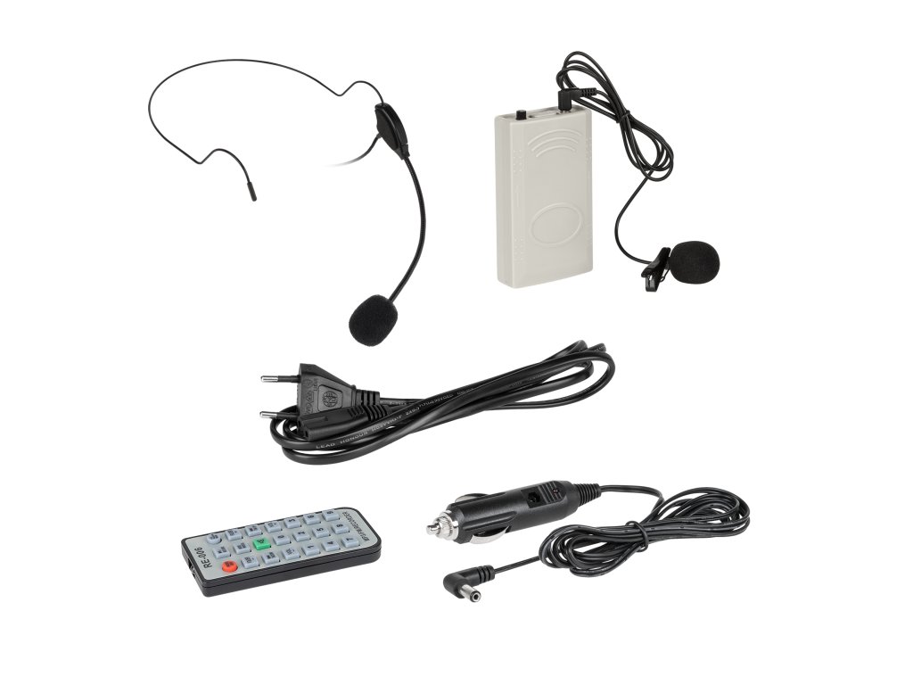 În pachet: Unitatea principală, microfon de mână, microfon lavalieră, microfon de cap, geantă, adaptor auto, manual de utilizare