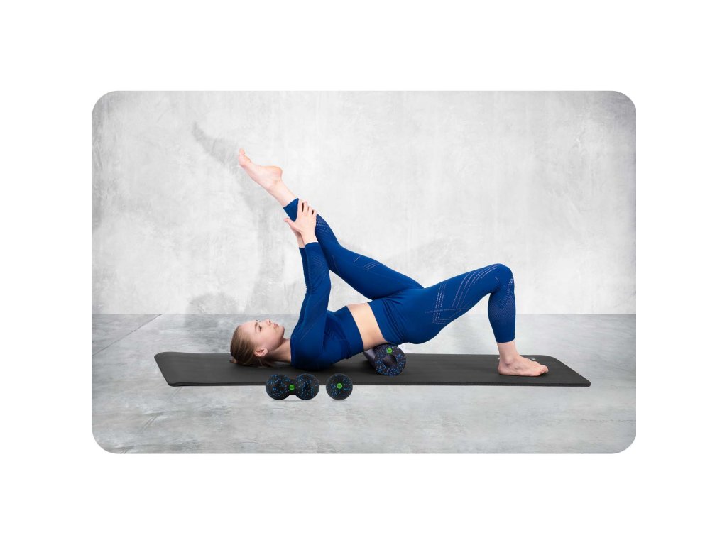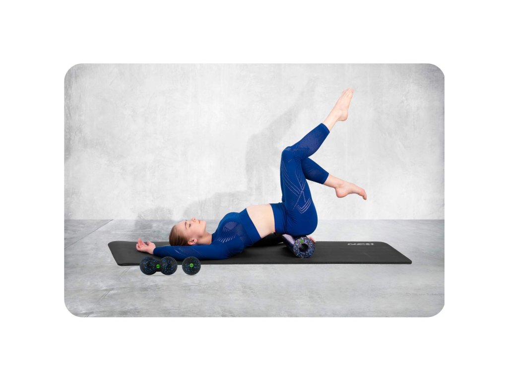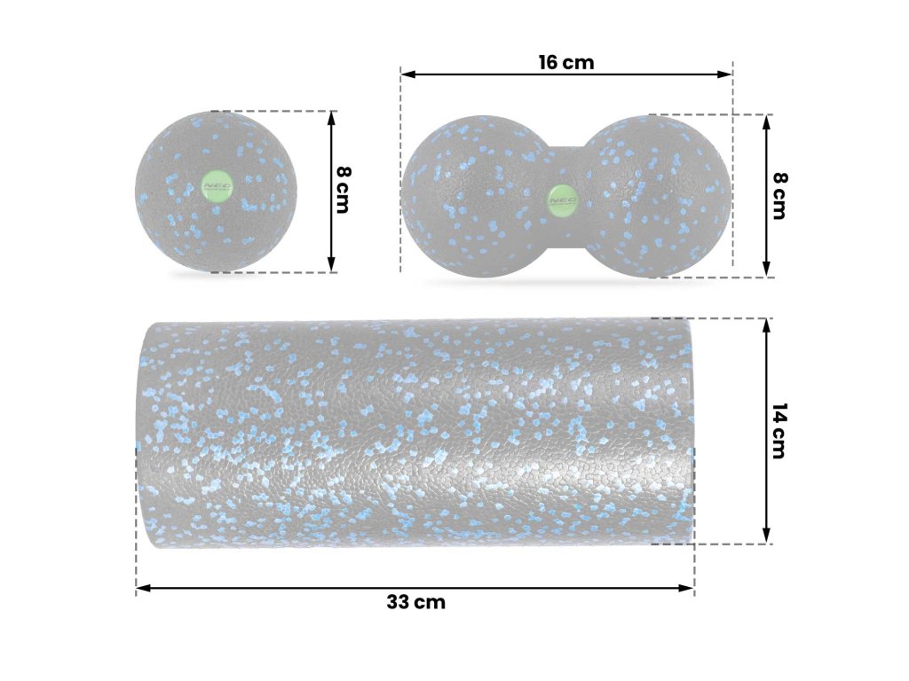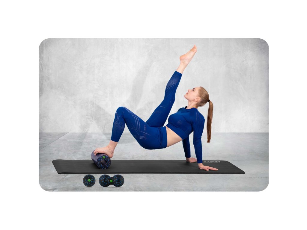 Set rola de exerciții + minge + minge de masaj dublă NS-998 negru-albastră