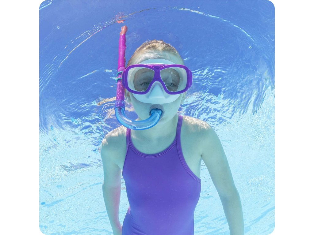 Acum poți să te scufunzi și să te distrezi pe săturate în apă! Masca pentru înot inclusă în set are lentile din policarbonat
