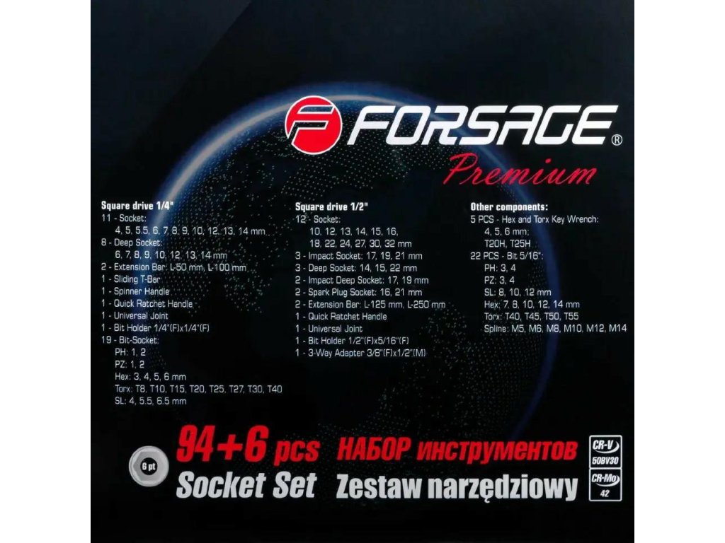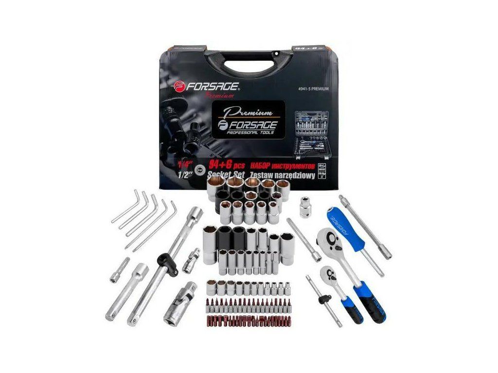 Set de scule 94 piese+ 6 elemente 1/2" și 1/4" cu 6 fețe