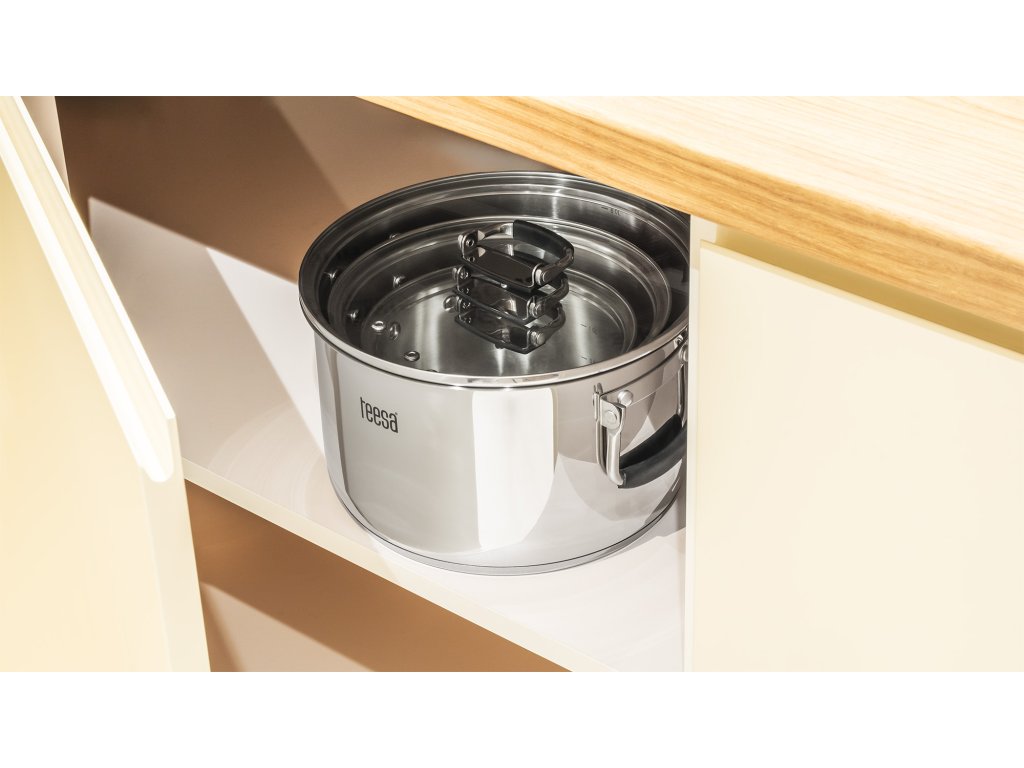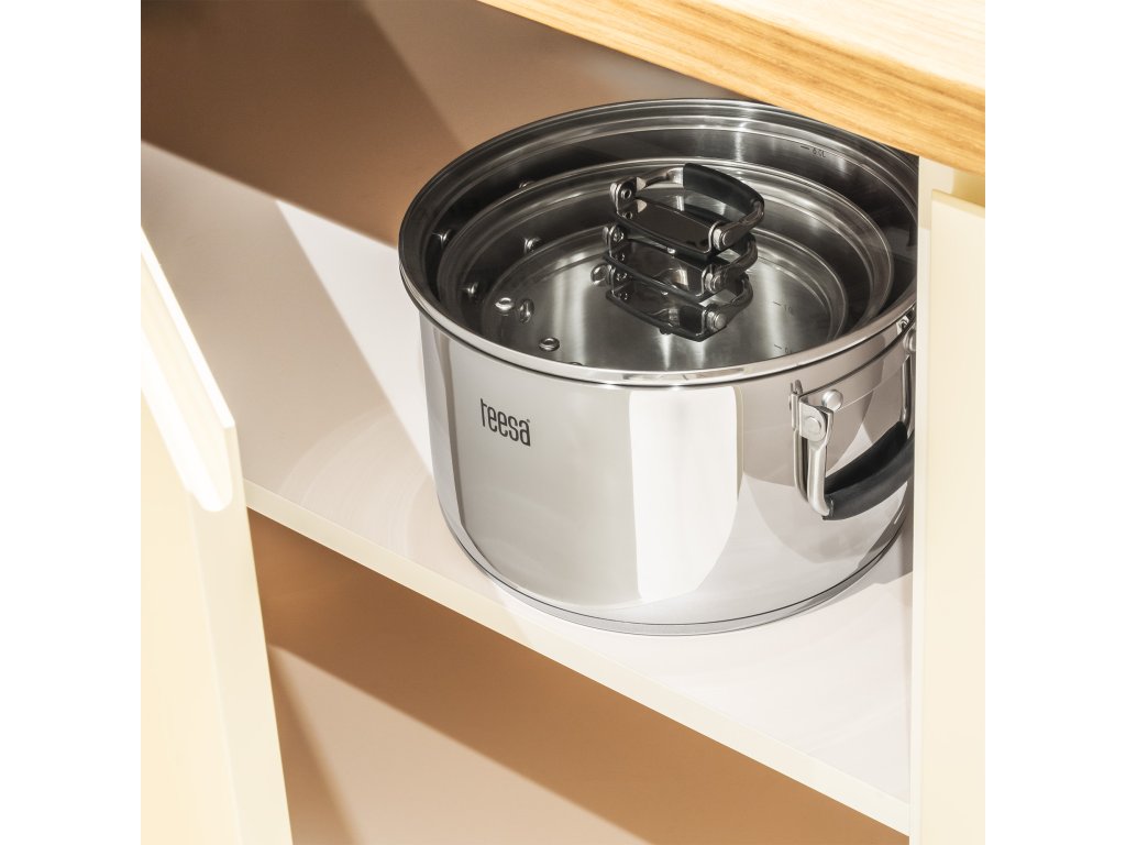 Setul de oale Teesa a fost proiectat cu gândul la confort și economisirea spațiului. Construcția inteligentă cu mânere nituri pliabile este o adevărată salvare, nu doar în bucătăriile mici. Sfârșitul dezordinii în dulapuri și al căutării veșnice a capacului potrivit pentru oală. Datorită posibilității de a introduce oala una în cealaltă, economisiți spațiu valoros în bucătăria dumneavoastră.