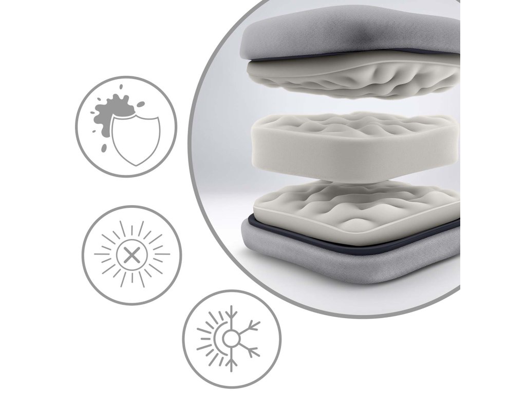 Perna moale și flexibilă este acoperită cu o husă din material textil de înaltă calitate. Datorită acestui fapt, este durabilă și delicată cu pielea.