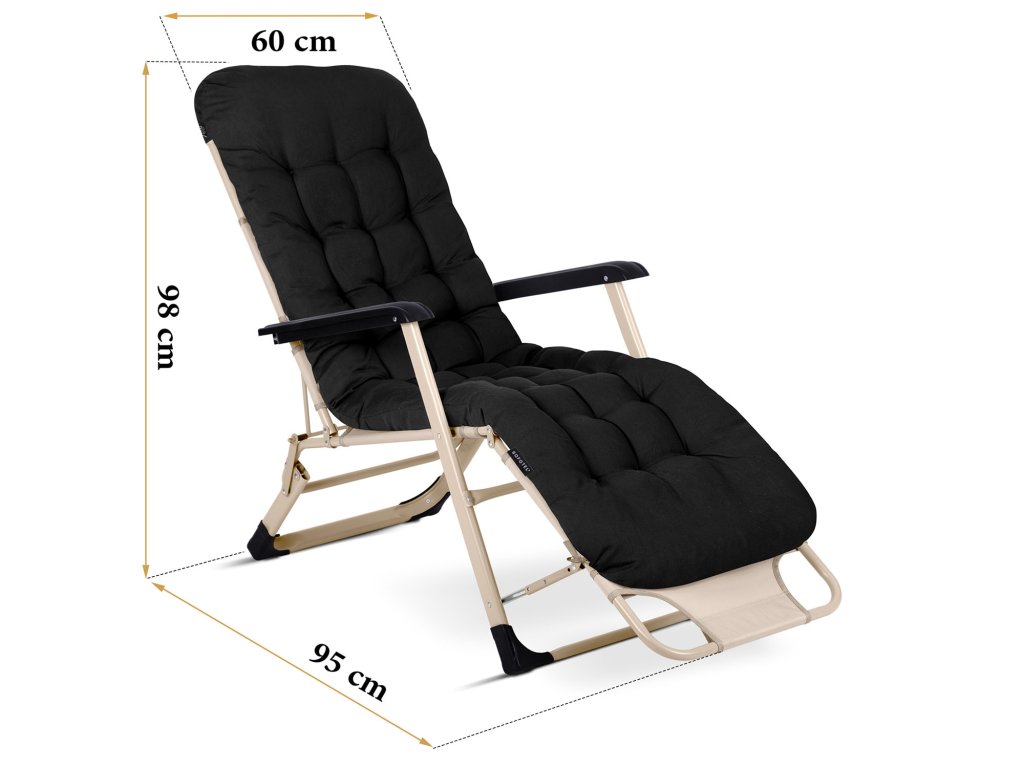 Construcție solidă din materiale rezistente și durabile asigură longevitatea și stabilitatea șezlongului.Protecții antiderapante pe picioare.