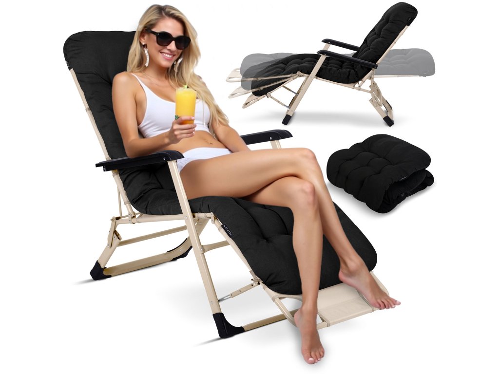 Șezlong de grădină pliabil cu pernă Sofotel ChillWell negru