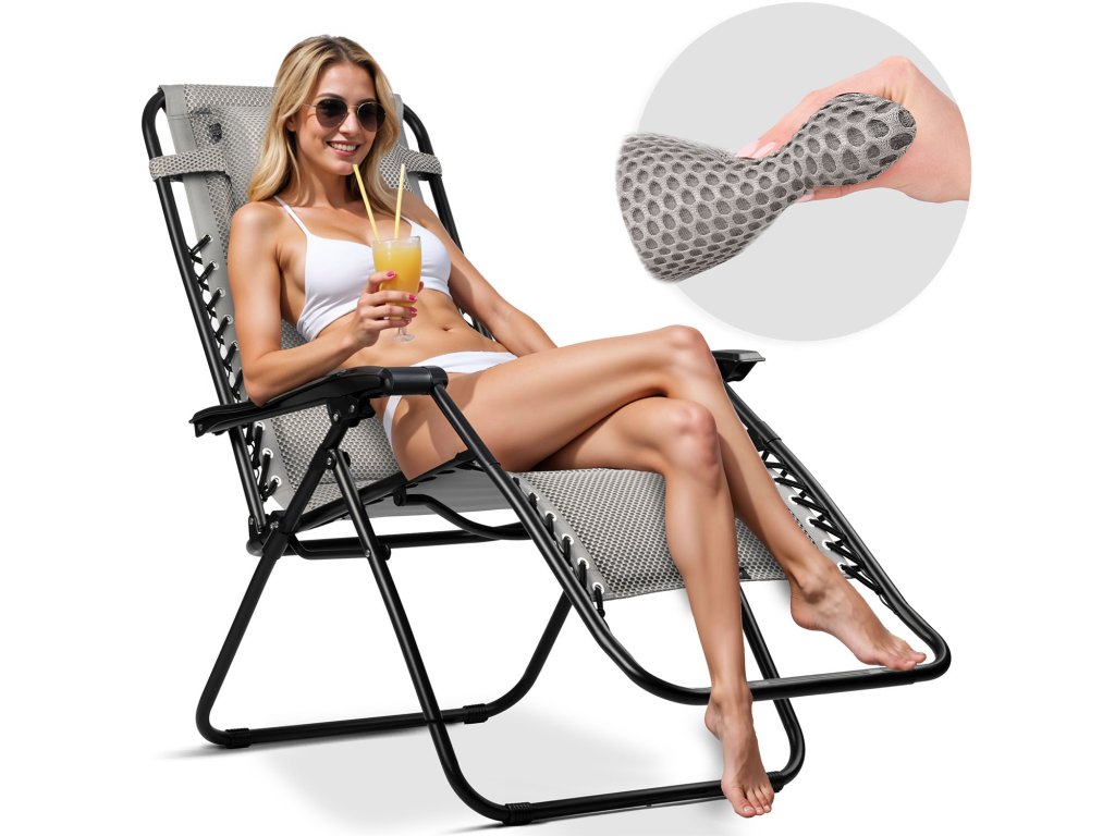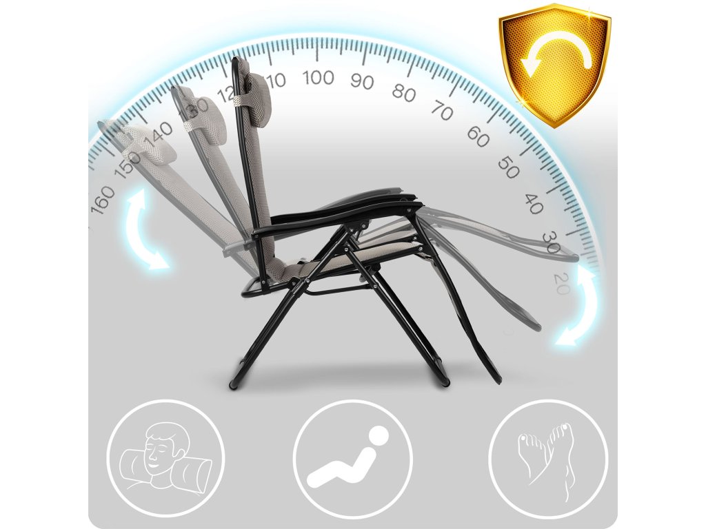 Șezlongul gravitațional cu pernă este o investiție în confortul și comoditatea relaxării zilnice în aer liber.Materiale: șezlongurile sunt realizate din materiale durabile și rezistente la intemperii, care sunt uscător-rapid, ușor de curățat și rezistente la mucegai și la radiațiile UV.