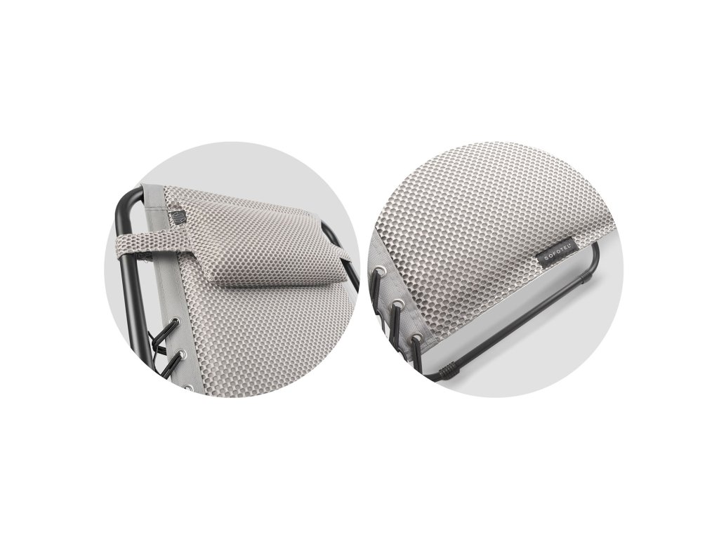 Acoperirea șezlongului este realizată din materialul inovator 3D