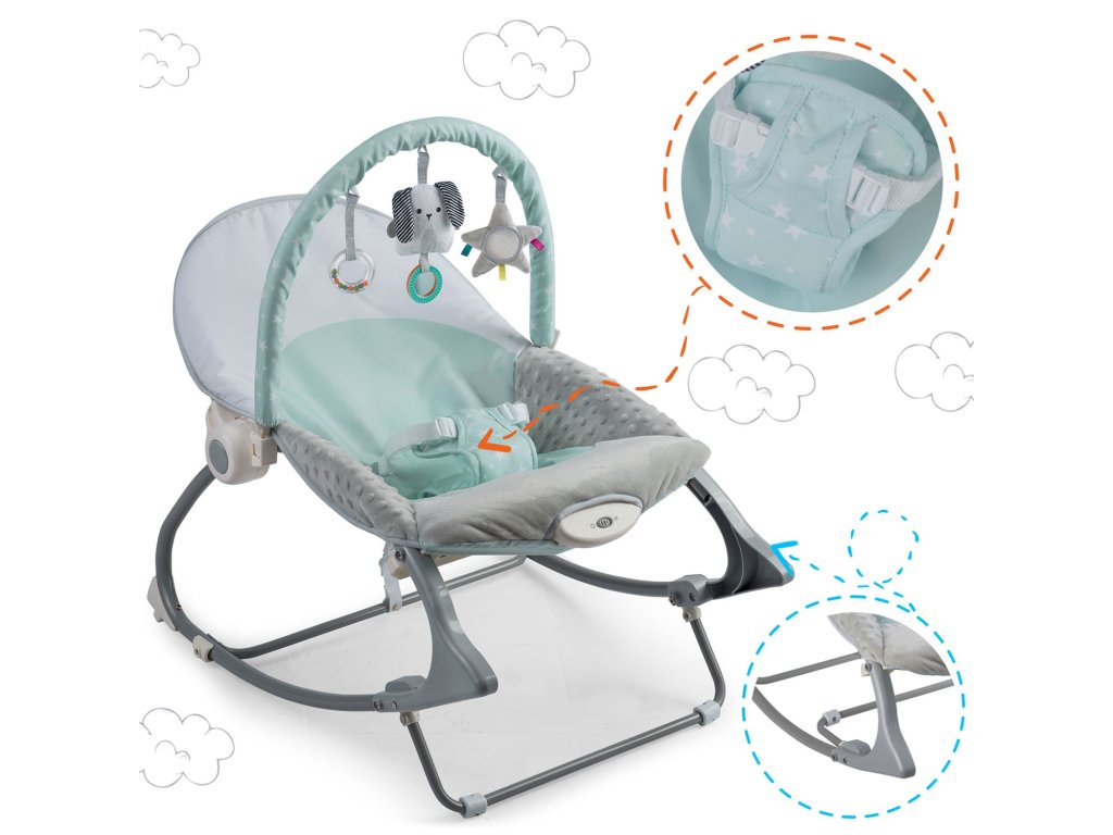 În balansoar este suficient să activați vibrațiile și să așezați bebelușul confortabil. După un timp, bebelușul se va relaxa și va adormi, iar dumneavoastră vă veți putea ocupa de îndatoririle dumneavoastră pentru un timp.