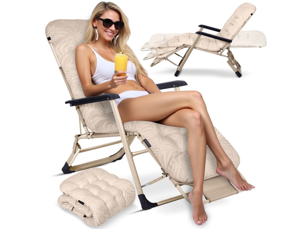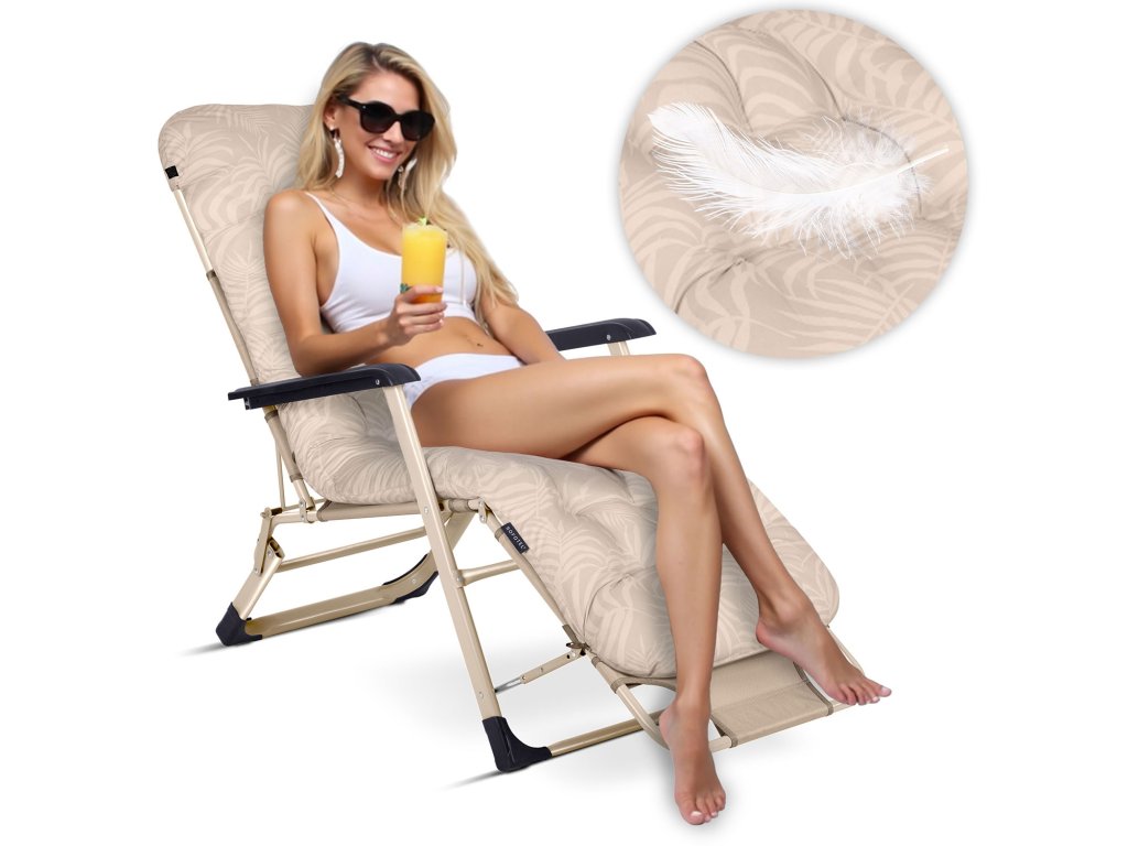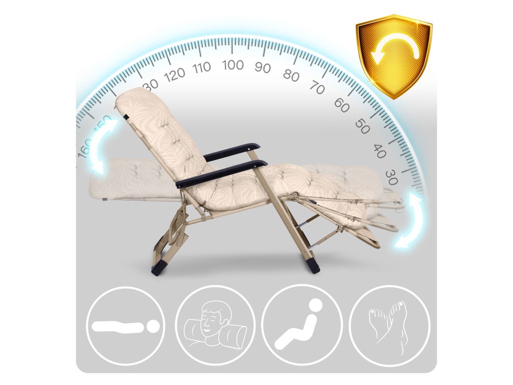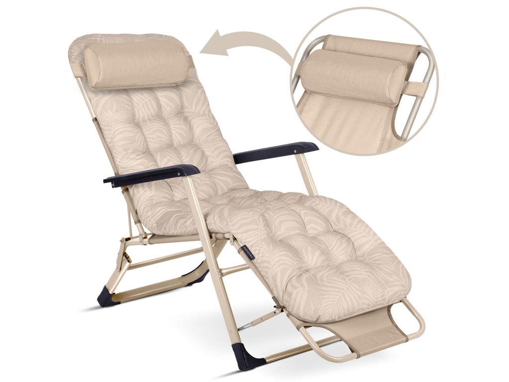 Ajustează șezlongul pentru tine!Perna bej este ușor de montat și demontat.