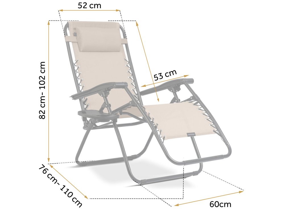 Descoperiți șezlongul nostru gravitațional pliabil — proiectat pentru a vă transporta într-o stare de imponderabilitate și relaxare absolută. Construcție ergonomică, posibilitate de ajustare a spătarului și construcție solidă.