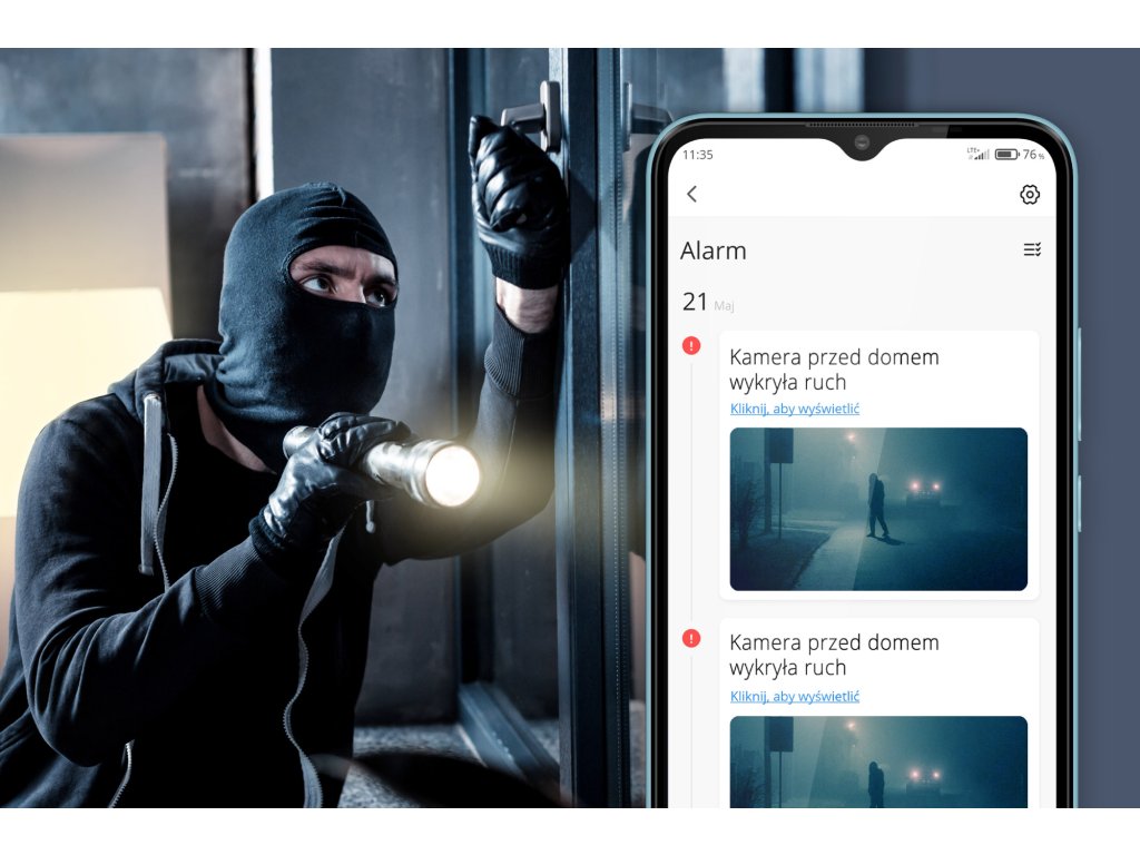 Reacționați rapid la orice amenințare! Datorită detectorului de mișcare, veți primi o notificare pe telefon când un intrus apare în curte. În plus, sistemul de monitorizare Kruger&Matz are o funcție care permite începerea automată a înregistrării imediat după detectarea mișcării.
