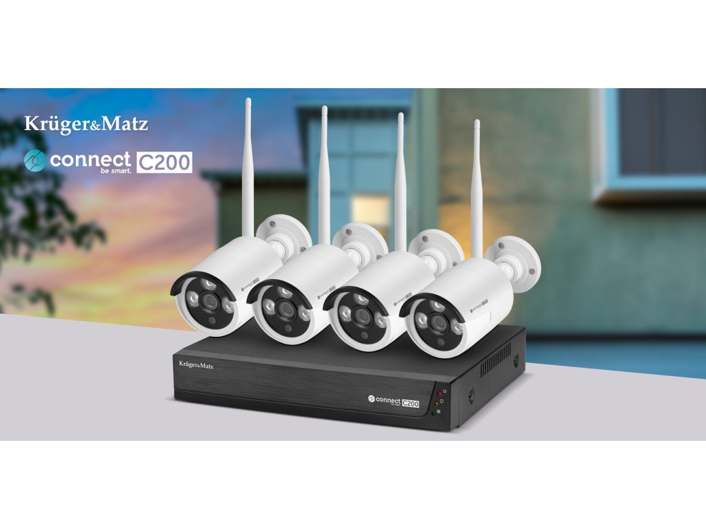Connect C200 este un set de camere wireless de înaltă calitate cu DVR, ideal ca sistem de monitorizare pentru casa sau afacerea dumneavoastră. Puteți utiliza 4 camere cu un unghi de vizualizare de 75,7° și cu o rază de acțiune de până la 300 de metri. Este important că carcasa lor etanșă este rezistentă la condiții meteorologice. Funcționarea lor corectă nu va fi afectată nici de căldura extremă, nici de ploaia puternică, nici de îngheț, astfel încât vă vor proteja pe tot parcursul anului.