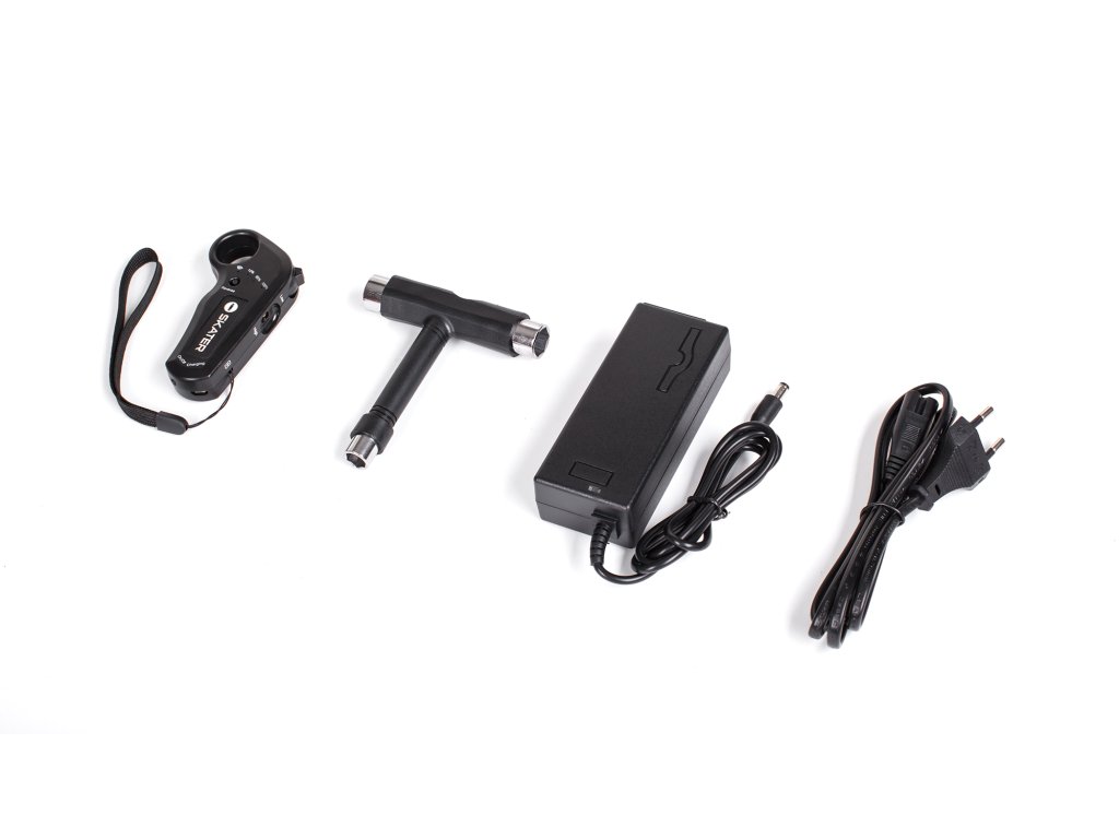 Incluse în pachet: skateboard, telecomandă, manual de utilizare, încărcător, cablu USB