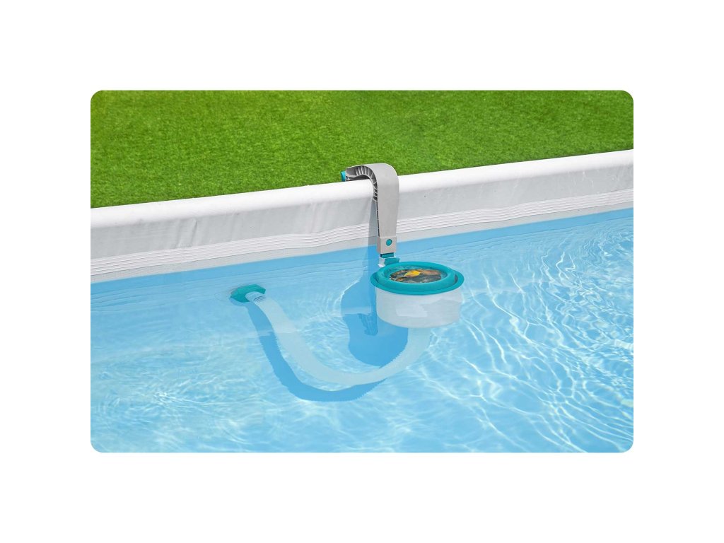 Skimmerul, după conectarea la pompa de filtrare cu o capacitate de cel puțin 2006 litri pe oră, servește la curățarea suprafeței apei de frunzele căzute sau insectele plutitoare pe aceasta.