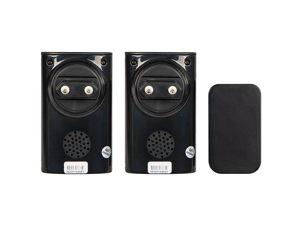 - Emițător rezistent la apă (IP44) – rezistent la ploaie și praf, ideal pentru exterior.