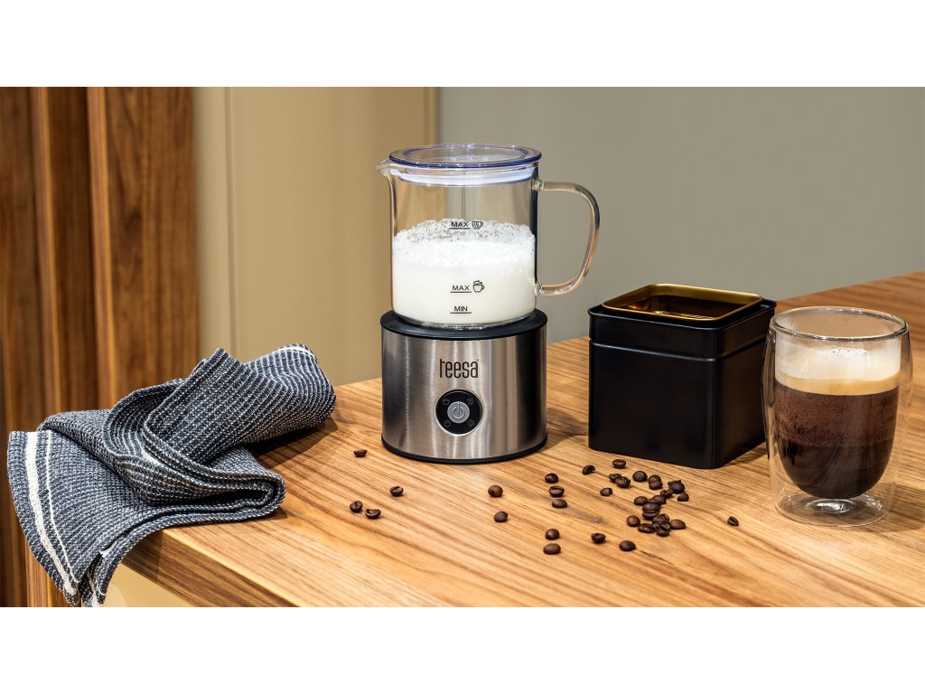 Nu este nimic mai bun pentru un început de zi decât o cafea aromatică cu spumă fină, cremoasă — mai ales când prepararea ei durează doar câteva momente. Spumantul de lapte Teesa AROMA F60, care folosește un sistem modern de inducție, creează instantaneu o spumă catifelată pentru cafea, cappuccino, latte sau ciocolată caldă.