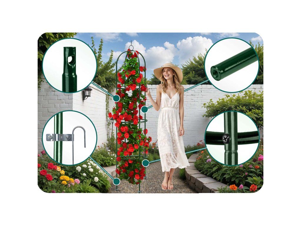 - Construcția intuitivă și instrucțiunile clare permit plasarea rapidă în grădină, pregătită pentru plantare cu plante agățătoare.