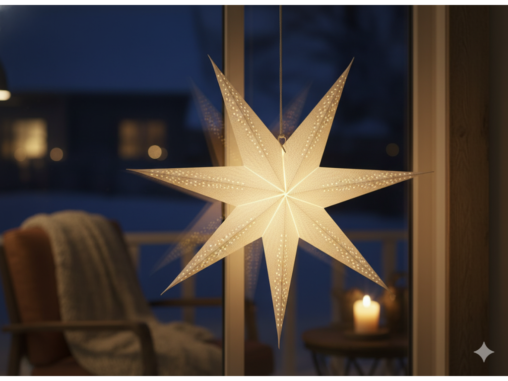 Această stea decorativă este o modalitate rapidă de a aduce magia sărbătorilor în casa sau magazinul dumneavoastră . Ideală pentru a fi suspendată la fereastră, pe tavan sau în vitrină. Datorită culorii neutre se integrează în orice stil interior, iar construcția sa ușoară facilitează montajul și depozitarea . Impresionați-vă oaspeții și clienții – alegeți eleganța în formă de hârtie!