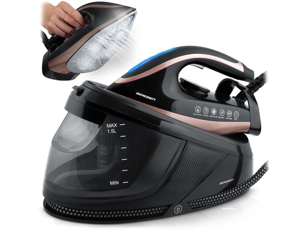 Stație de aburi puternică cu suport și rezervor mare de apă BerdsenPÂNĂ LA 3000 W PUTERE | AUTO-CURĂȚARE | PROTECȚIE SUPRAÎNCĂLZIRE | REZERVOR DE APĂ 1500 ML | ABURI VERTICALI | REGULARE TEMPERATURĂ | AUTO-OFF | ÎNFĂȘURĂTOR DE CABLU | SUPORT DE ÎNCĂRCARE | CABLU LUNG