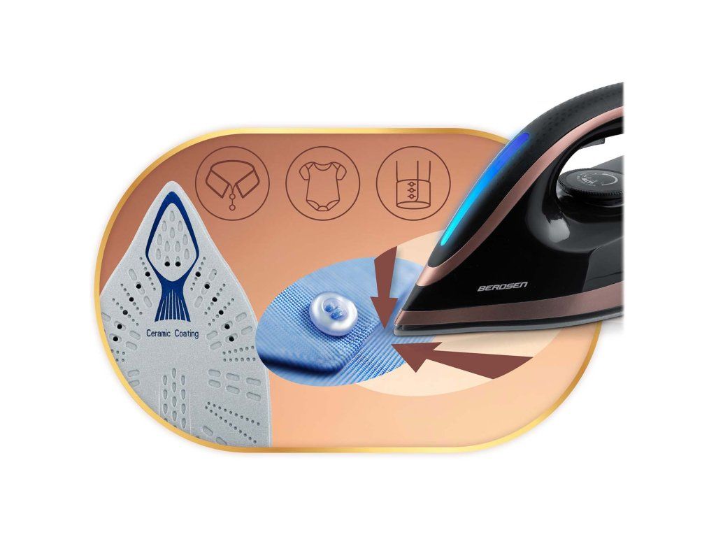 Acoperire ceramică protejează țesăturile și garantează o alunecare perfectă.Efectul O cămașă perfect călcată în câteva momente – fără defecțiuni și frustrări.