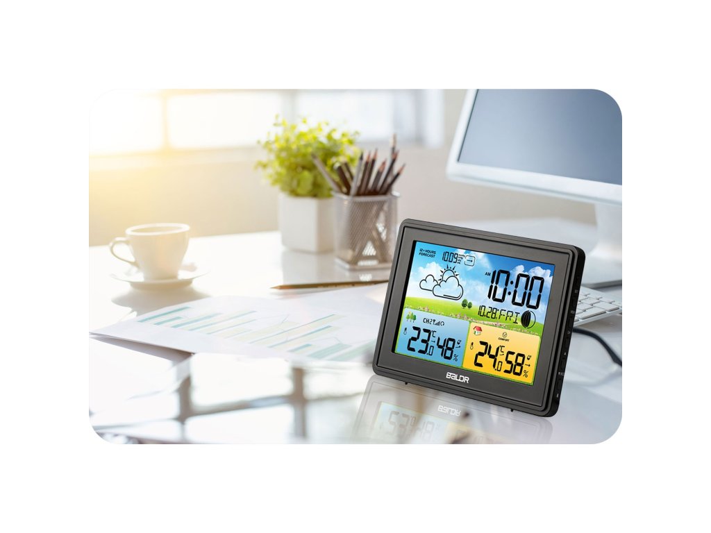 - Stația meteo cu higrometru încorporat permite controlul și menținerea unui microclimat adecvat în interior sau exterior.