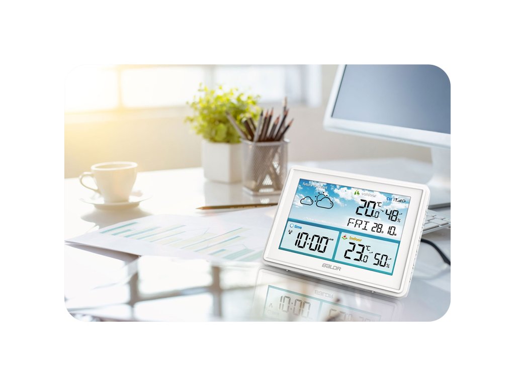 Este potrivită și ca calendar, ceas și ceas deșteptător. Cu acest dispozitiv, aveți informații despre vreme la îndemână!