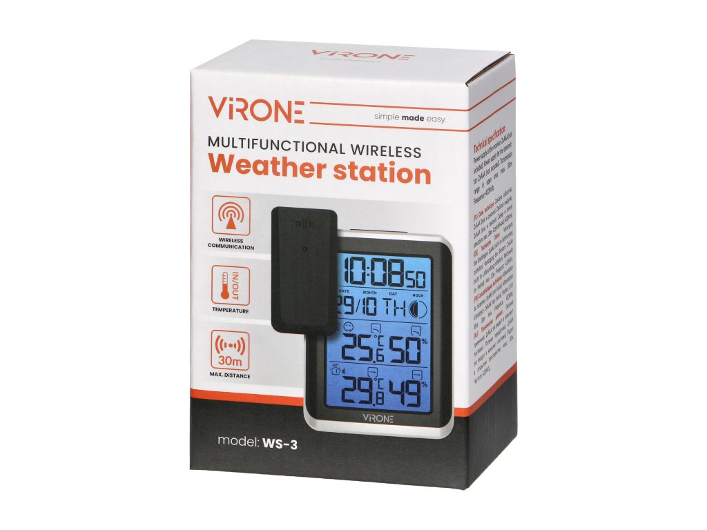 Stația meteorologică fără fir cu funcții este concepută având în vedere gospodăriile, birourile sau utilizările profesionale. Este alegerea potrivită pentru cei care cer informații precise și de încredere despre vreme în timp real. Datorită spectrului larg de funcții, acest dispozitiv este un ajutor neprețuit oriunde este importantă monitorizarea condițiilor meteorologice.