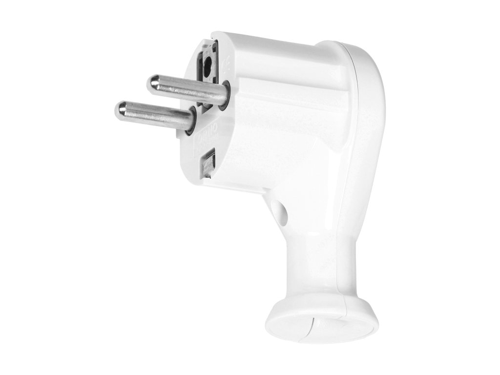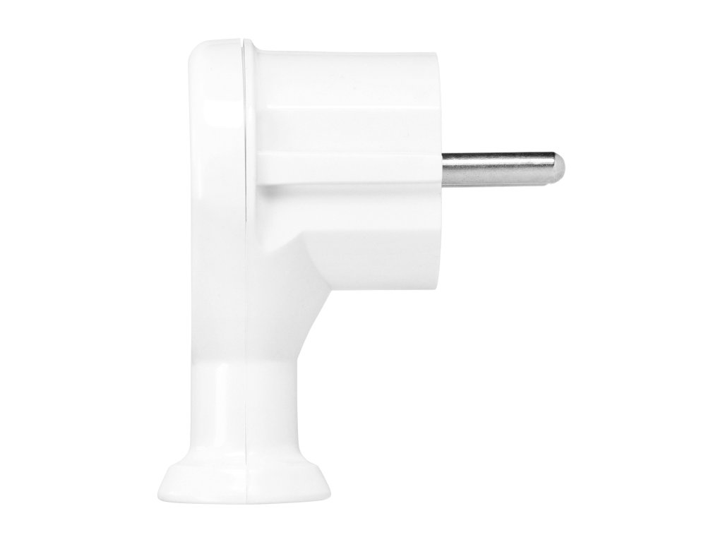 Ștecăr unghiular universal alb 2P+E