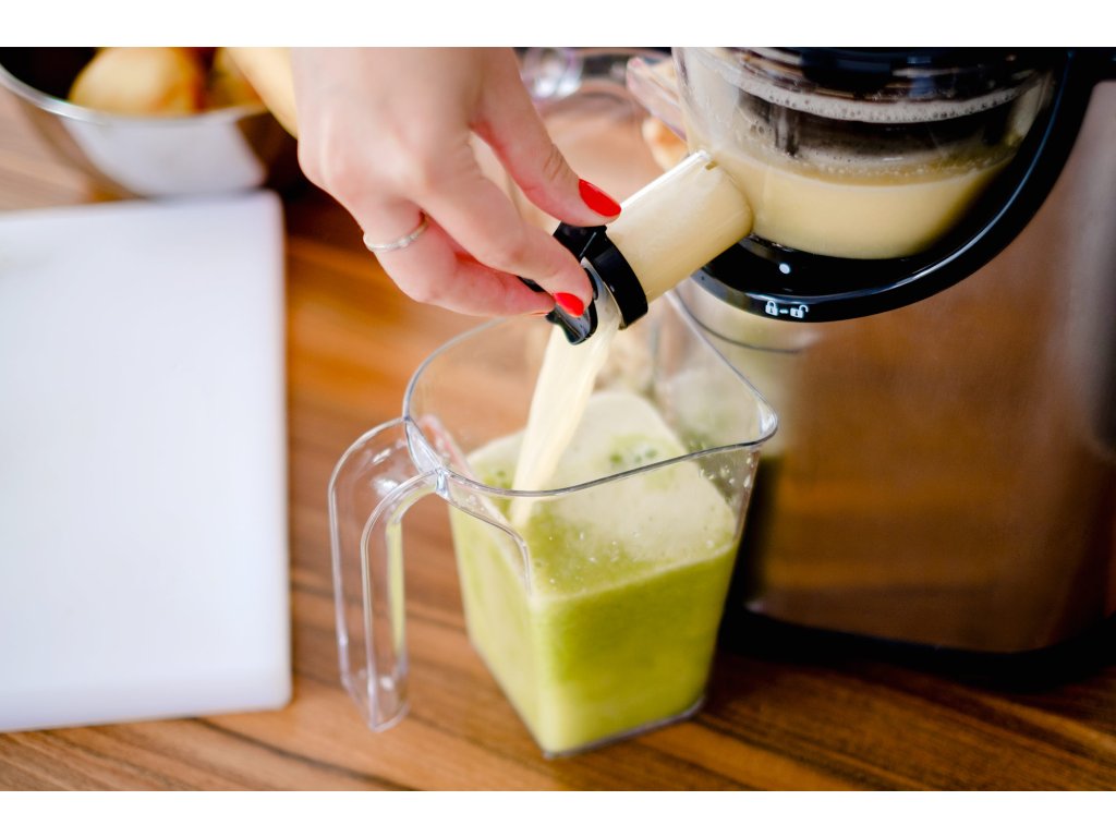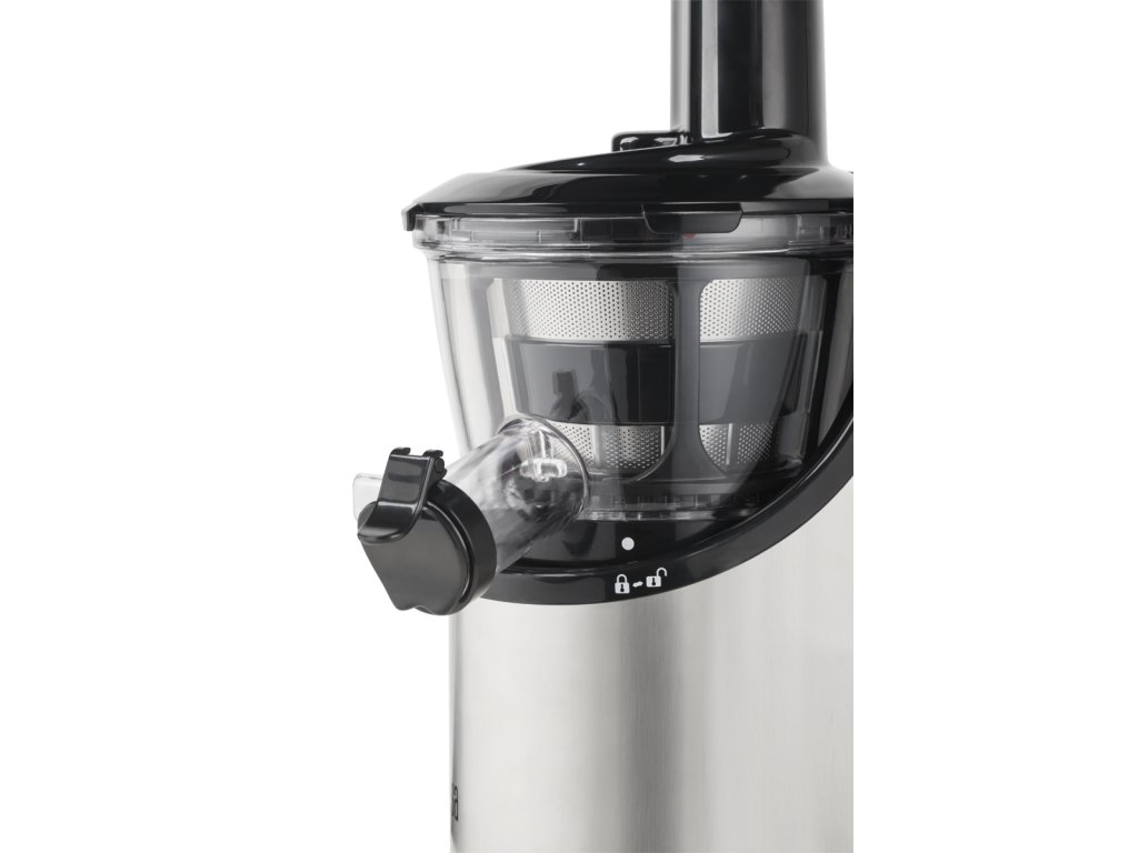 Sistemul cu un singur melc, puterea de 150 W și viteza de 65 rotații pe minut asigură o performanță ridicată, permițând obținerea unei cantități maxime de suc. Un avantaj îl constituie funcția reversibilă, care vă ajută să deblocați aparatul în cazul în care acesta se blochează în timpul utilizării, de exemplu, de un sâmbure de fruct.