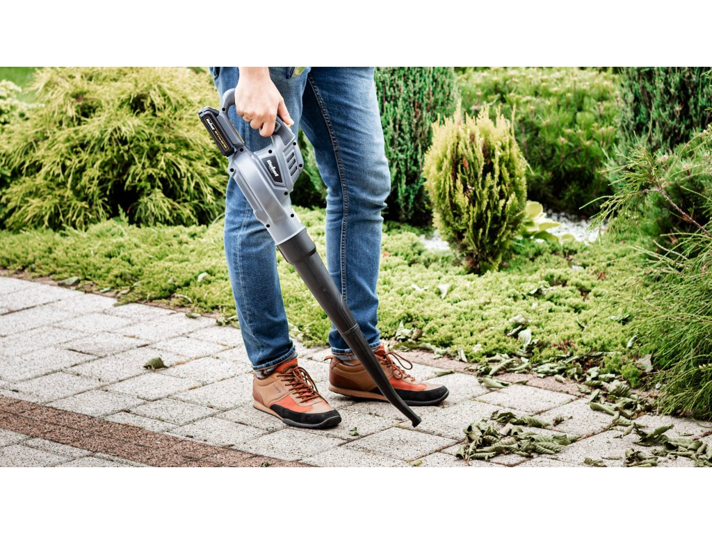 Suflanta cu acumulator Rebel Tools este instrumentul perfect pentru curățenia de toamnă. Datorită vitezei aerului de 245 km/h, puteți îndepărta cu ușurință și rapid frunzele, granulele de nisip și firele de iarbă din grădină.