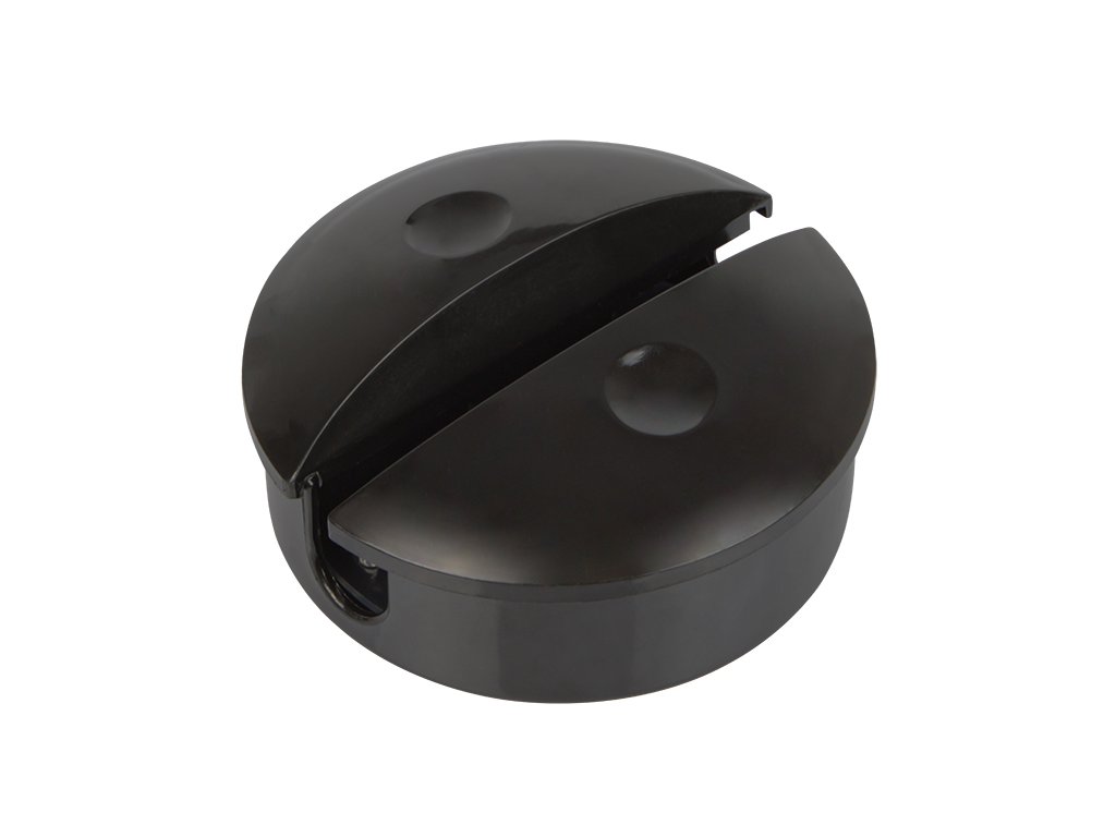 Organizator de cabluri sub formă de înfășurător de culoare neagră. Produsul permite aranjarea simplă a mai multor cabluri, fire și fibre într-un singur pachet. Fabricat din plastic rezistent la deteriorare.