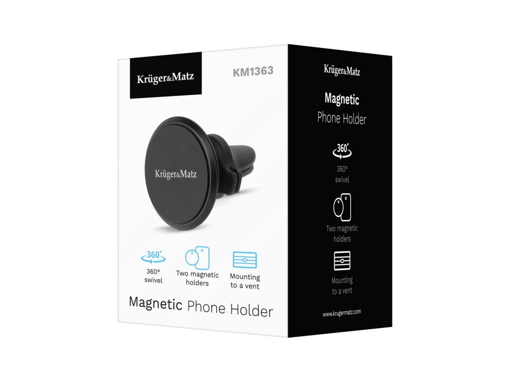 Suportul auto magnetic universal pentru telefon Kruger&Matz are posibilitatea de rotire a suportului la 360°. Astfel, puteți ajusta poziția telefonului confortabil în funcție de nevoile dvs.