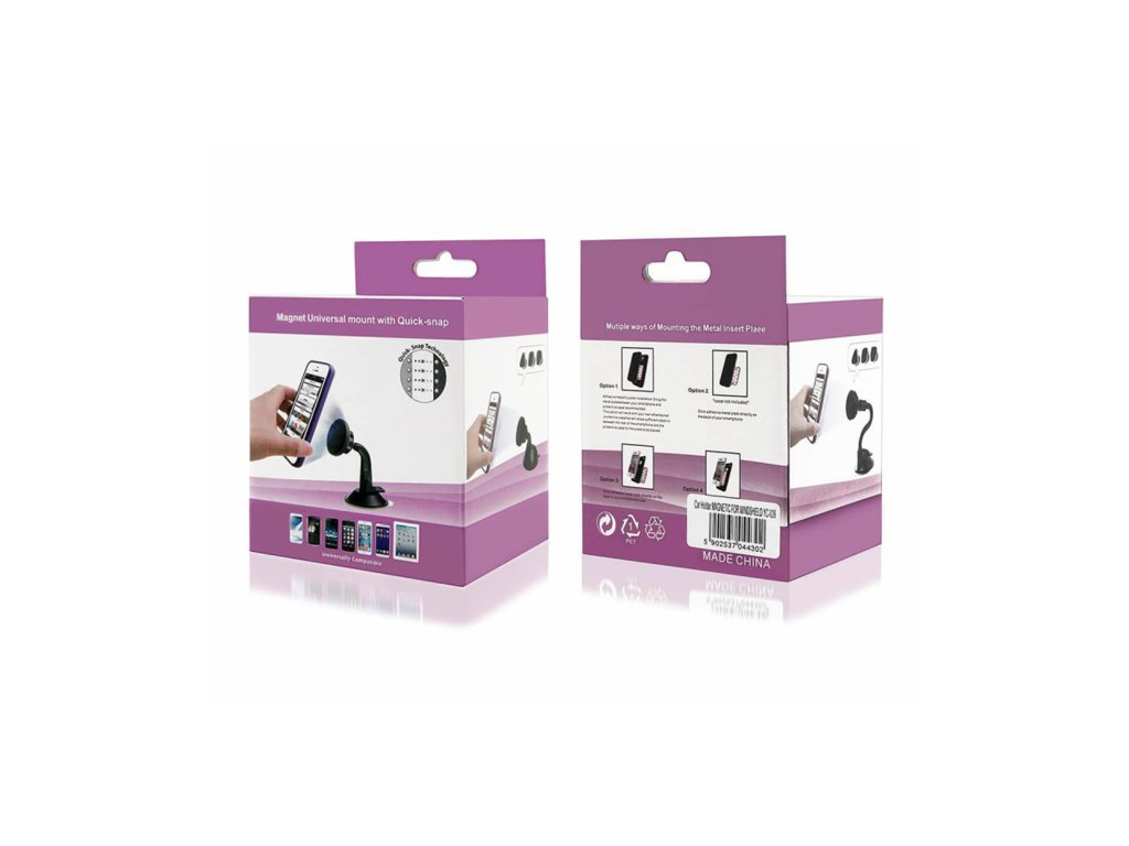 Un suport auto modern, stabil și magnetic pentru telefoane, montat pe parbrizul vehiculului. Telefonul (sau un alt dispozitiv electronic) este fixat cu ajutorul unei plăci magnetice speciale, care asigură o stabilitate deosebită în timpul condusului.