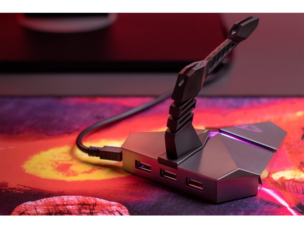 Mouse Bungee Kruger&Matz nu va funcționa doar perfect cu echipamentul dvs. de jocuri, dar va și potrivi perfect din punct de vedere al designului. Aceasta este asigurată nu doar de forma ingenioasă a dispozitivului, ci și de iluminarea LED pulsantă care își schimbă culoarea.
