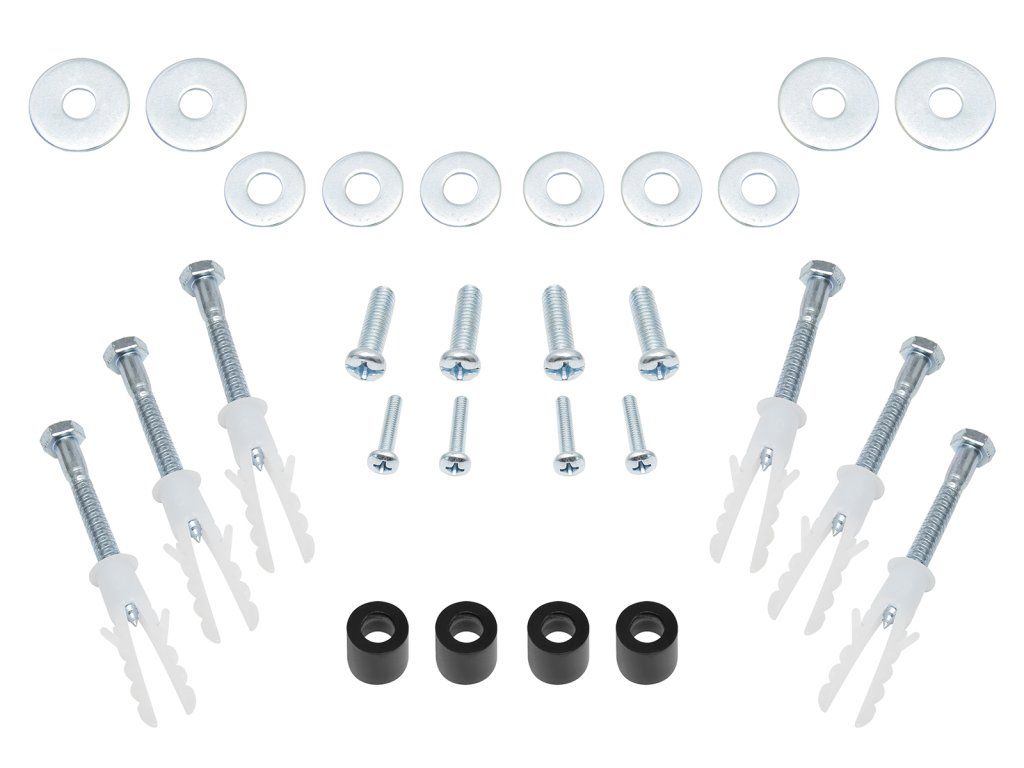 Accesoriile de montaj incluse în set vă permit să montați pe suport nu doar suportul de perete, ci și majoritatea televizoarelor fără necesitatea cumpărării suplimentare de șuruburi sau dibluri. Se merită totuși să verificați dacă diblurile incluse sunt adecvate pentru peretele pe care plănuiți să montați suportul.