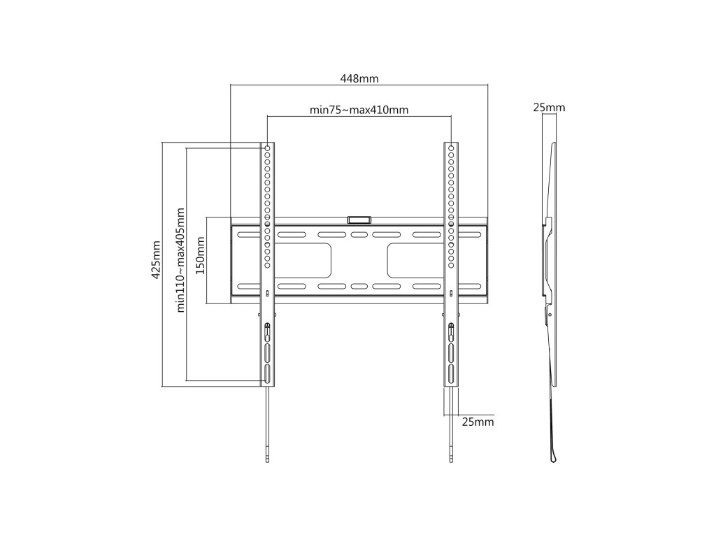 Standard VESA: 200x200, 300x300, 400x200, 400x400 mm