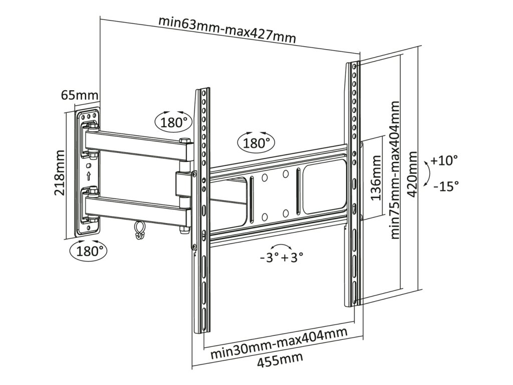 Distanța față de perete: 63 ~ 427 mm