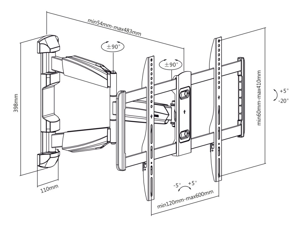 Destinat pentru televizoare de 32-55"Reglare verticală +15/-20 grade