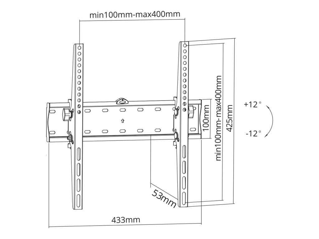 Ajustare verticală: +12° / -12°